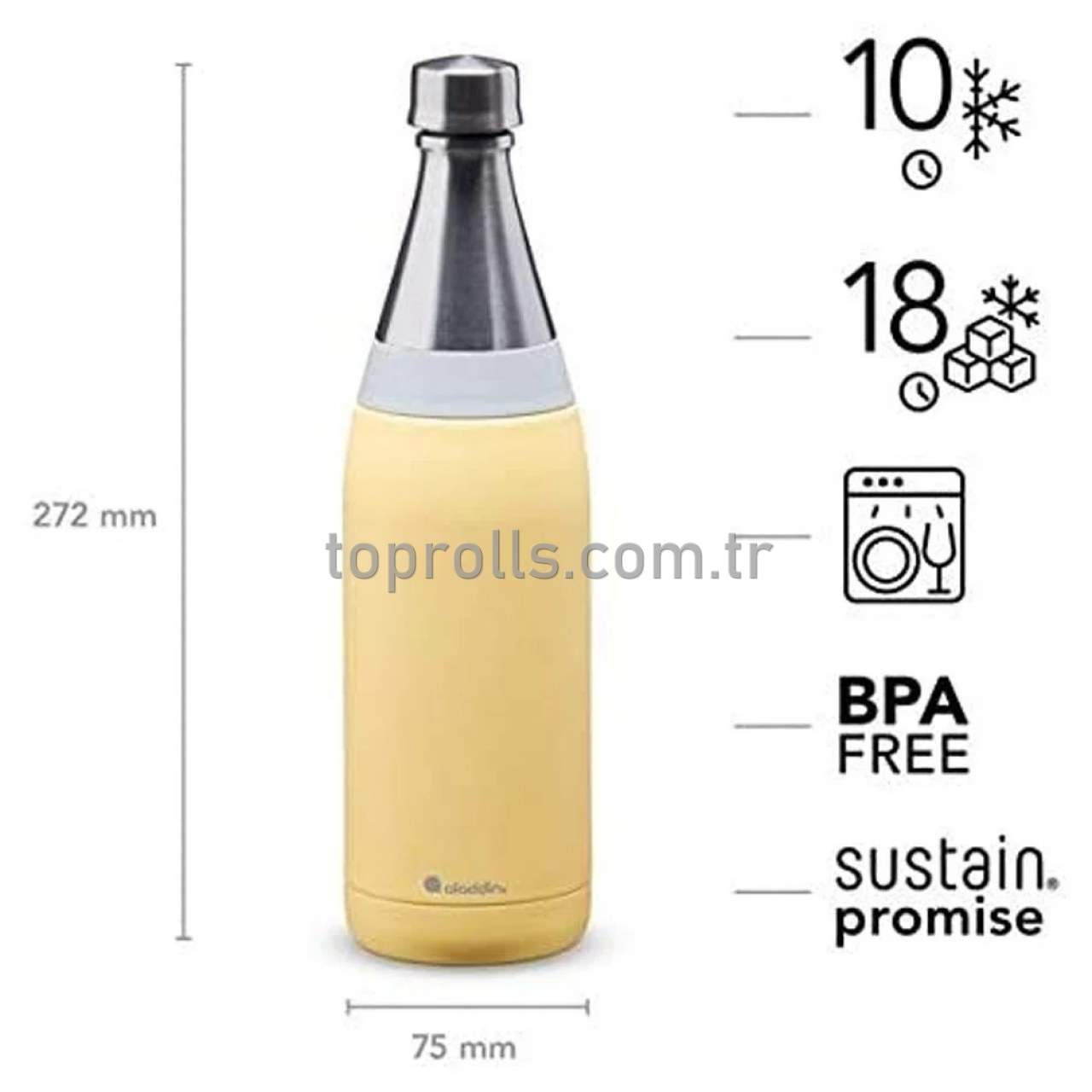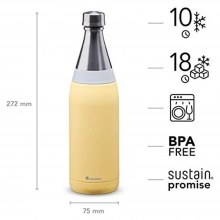 Aladdin Fresco koleksiyonu ile hepsine gerçekten sahip olabilirsiniz: ileriye dönük ve şık tasarım, güvenilir işlevsellik, EU-testinden geçmiş, dayanıklı, paslanmaz çelikten yapılmış, yeniden kullanılabilir su şişesi; BPA içermez.