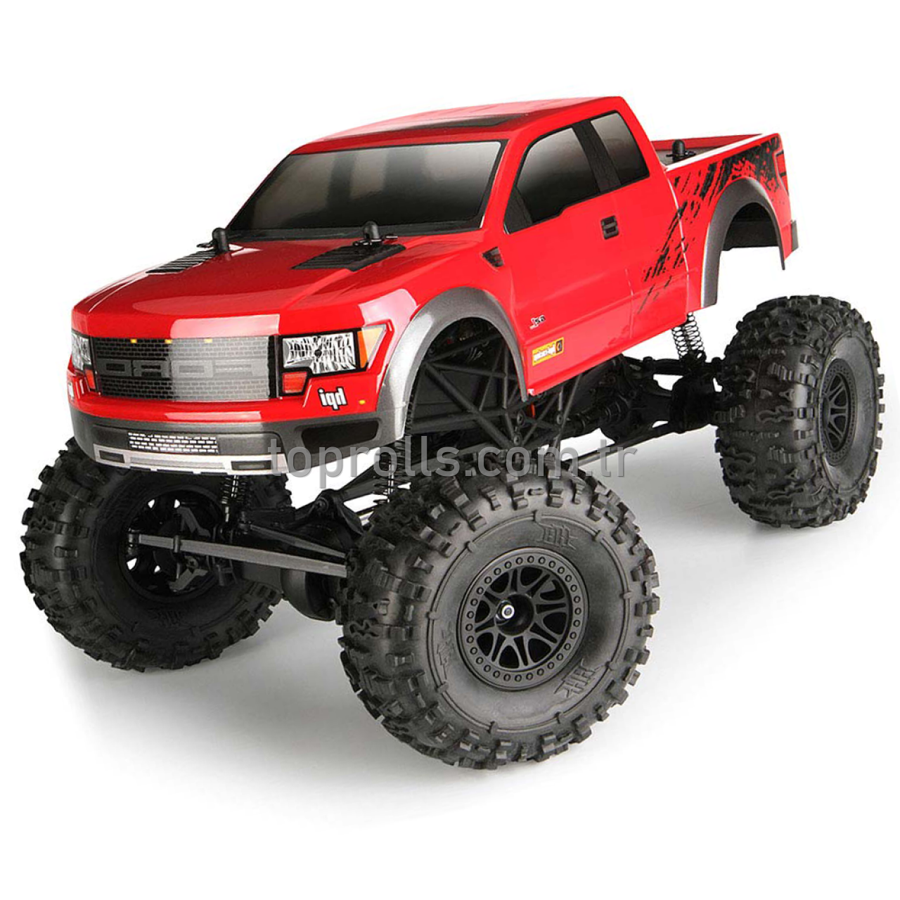 Crawler King harika bir ölçek görünüm için Ford Raptor gövdesi ile hazır gelmektedir.Gövde tamamen boyanmış ve detaylı parlak kırmızı bir renge sahiptir. Aynı zamanda foto gerçekçi çıkartmalara sahiptir, bu nedenle yerel ormanınızdaki veya parkınızdaki tepelere ve kayalara tırmanırken gerçek bir kamyona benziyor.