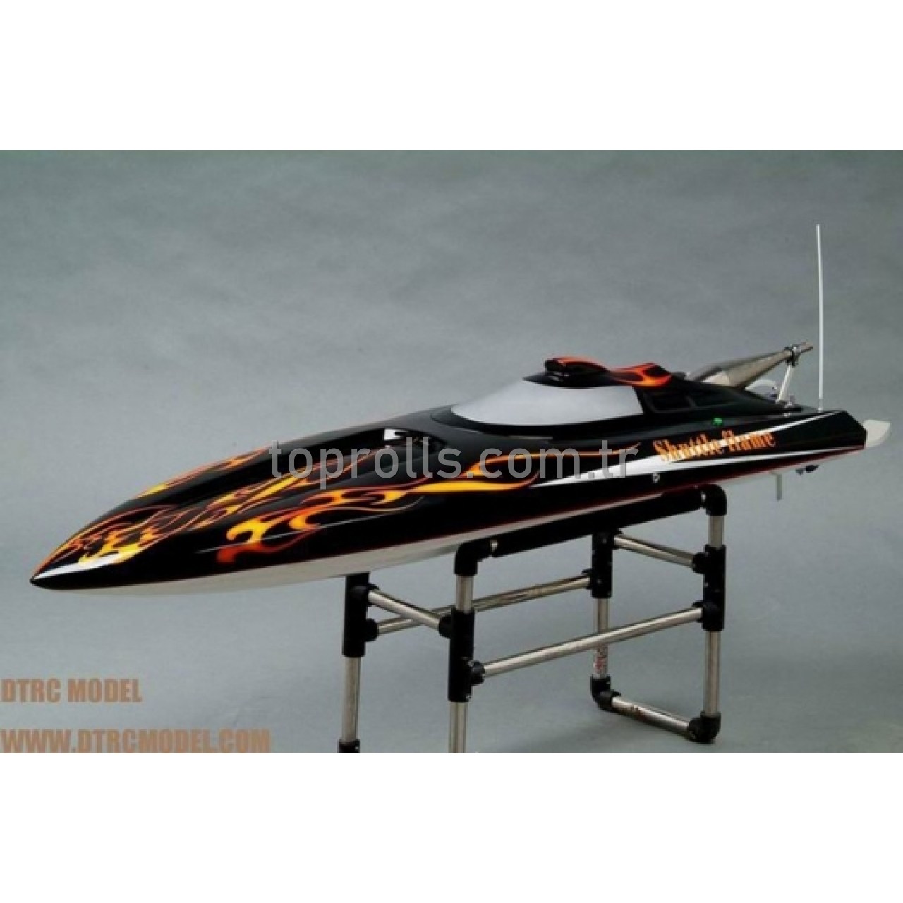 Orijinal ZENOAH benzin motorlu, tuned egsozlu ve kavramalı olan DTRC tekneleri en kaliteli epoxi ve hafif elyaftan üretilmiştir. Yıllarca model marin yarışlarında edinilen tecrübelerle son derece ince ayarlanmış, CNC işlenmiş DURALUMINIUM ve KROM kuyruk takımları ile donatılmış tekneler inanılmaz süratlere çıkabilmektedir. Hem motor hem tunedpipe hemde egsoz manifoldu su soğutmalıdır. Paslanmaz malzemeden sehpaları kutusunda gelmektedir.