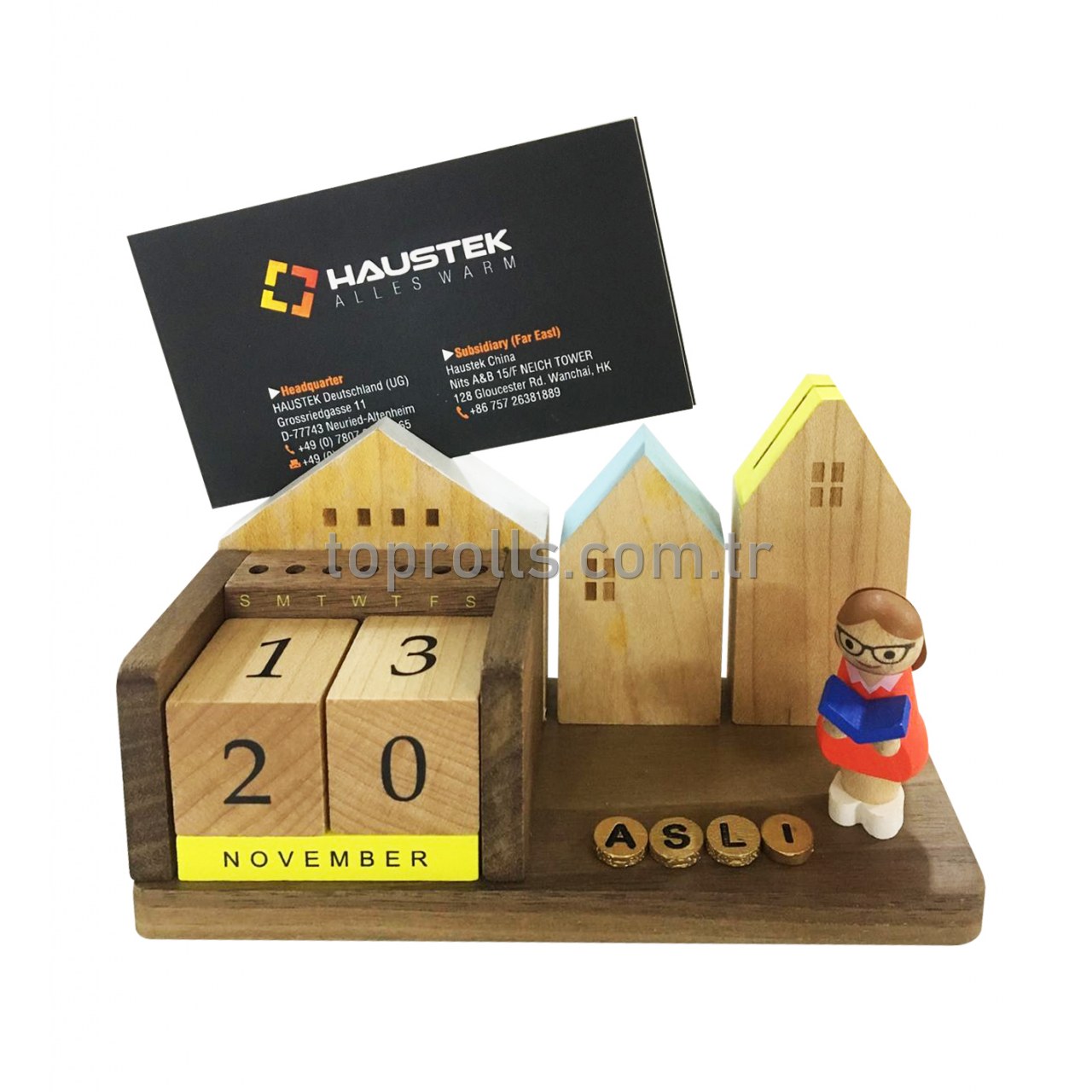 El yapımı ahşap kartlık ve takvim.