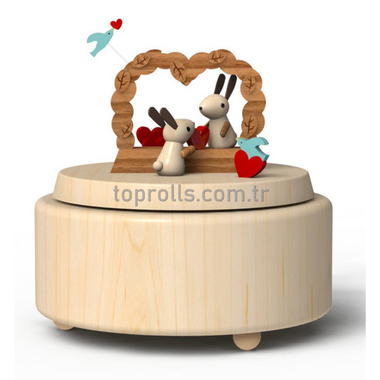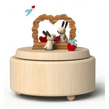 Tamamı el yapımı ve organik boya ile boyanmış olan Aşık Tavşanlar konseptli bu Müzik Kutusu, Kanada meşesinin ahşap malzemesinden yapılmıştır. Japon Sankyo melodi mekaniği kullanılmıştır. Ayrıca tamamı doğaya duyarlı, geri dönüşüme uygun ürünlerdir.