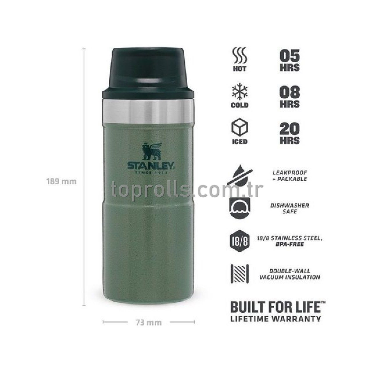 BPA içermez, sızdırma yapmaz iç kapak, taşıma kulplu,
