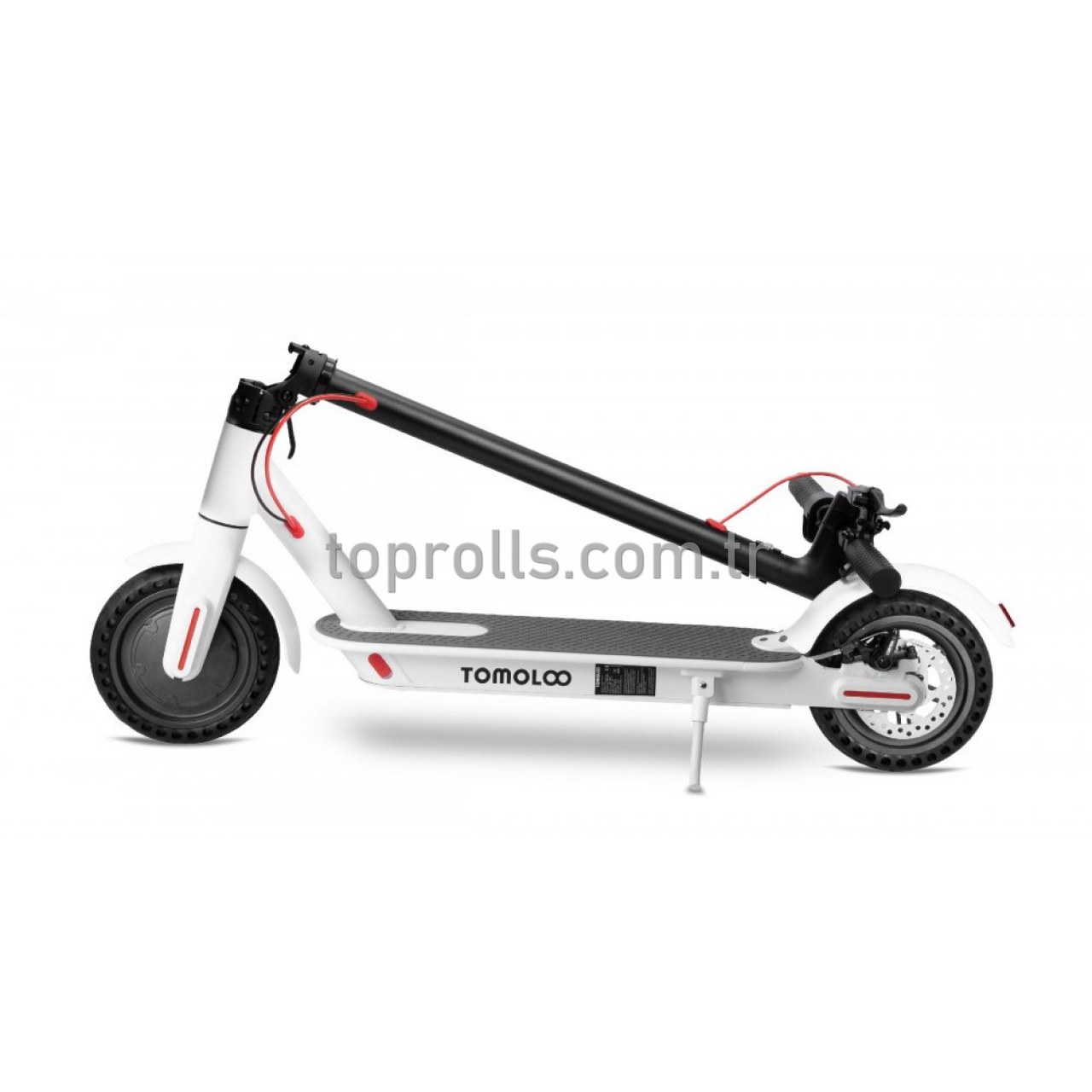 Tomolco H7 Elektrikli Scooter E-Scooter Kaykay 250Watt Patlamaz Dolgu Teker Beyaz Dolgu Kauçuk Teker - Katlanabilir - Led Işıklı