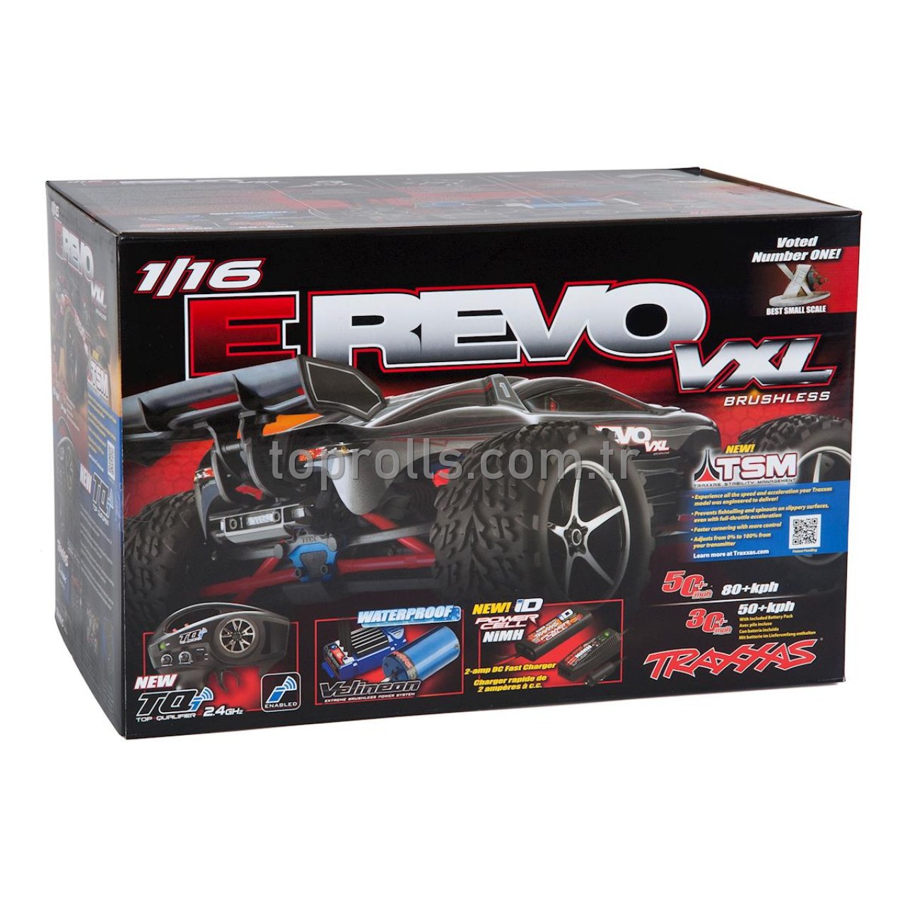 Bazı "mini" modeller, "mini" olmasına rağmen çok hızlıdır fakat yinede Traxxas için yeterli değildir! Yeni E-Revo 1/16 tam anlamıyla bir hız makinesi olacak şekilde geliştirilmiş. Kutusundan çıkan NiHm batarya ile 60 km hıza uşaran E-Revo VXL, mudallerine kıyasla çok daha hızlıdır. Fırçasız motordan tam verim alabilmek için opsiyonel LiPo batarya tercih ederseniz, aracınız 85 km hıza ulaşır.