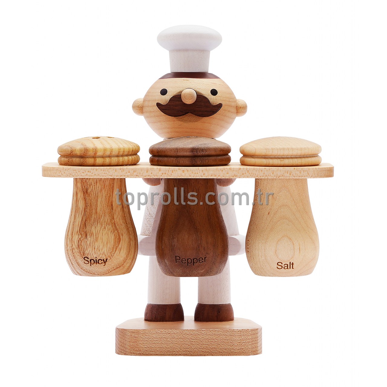 Tamamı el yapımı ve organik boya ile boyanmış olan  bu Baharatlık Seti Tuzluk, Karabiberlik ve Acı baharatlarınızı koyabileceğiniz 3 adet baharatlıktan oluşmaktadır, Kanada meşesinin ahşap malzemesinden yapılmıştır. İçinde  Ayrıca tamamı doğaya duyarlı, geri dönüşüme uygun ürünlerdir. Hem dekoratif olarak hemde fonksiyonel orak mutfağınızı süslecek bu ürünün ölçüleri: 191x161x125 mm